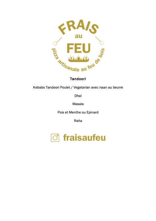 Our business began with pizza and that’s where our roots will always be but clients and wedding planners increasingly asked if we could provide more than one service. In response we added traditional Bretagne crepes for desert, side dishes / salads, tandoori kebabs and naan breads all baked in the wood-fired oven and now we often provide catering over a whole wedding day or weekend, not just for welcome or recovery days. For weekend menu recommendations and ideas call us on 06 02 35 58 41 or email fraisaufeu@gmail.com. Our most popular pizza choices are listed below but we regularly go off piste for clients who want something different.